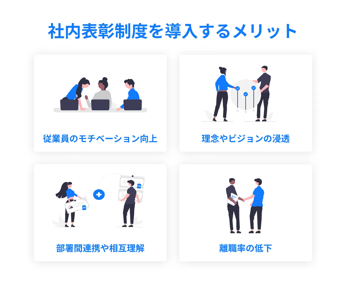 給与や待遇に対する不満以外に、自分の貢献が認められていないという不満が離職につながるケースも少なくありません。社内表彰制度は、こうした不満を解消する効果があるのです。
