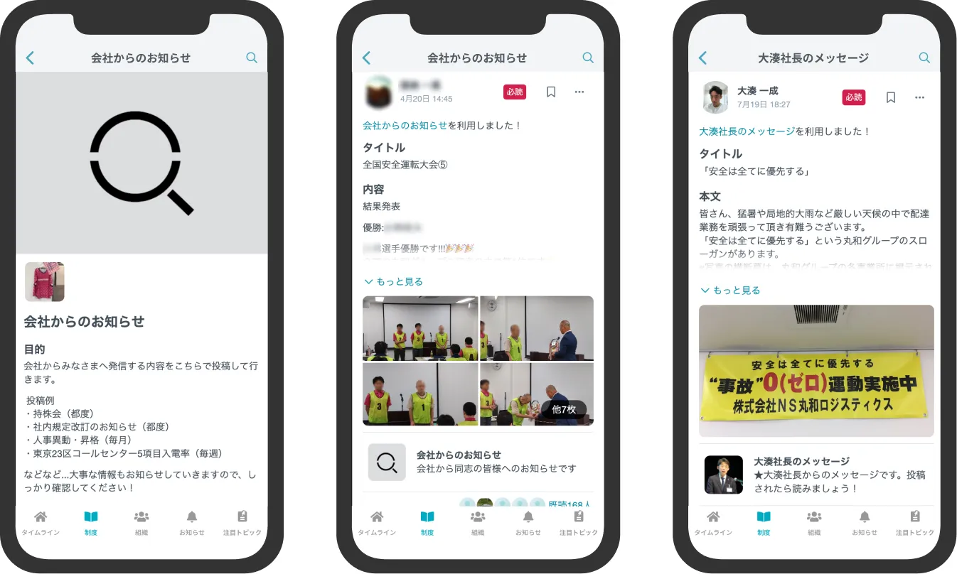 大久保:従来だとメールで連絡ができるのは管理者のみでした。現場の従業員はアカウントを持っていないので、管理者がメールを確認して、朝礼などで直接落とし込んでいくしかなくて。TUNAGでは重要な情報から些細なお知らせまで、本当に現場の末端まで情報を届けることができています。