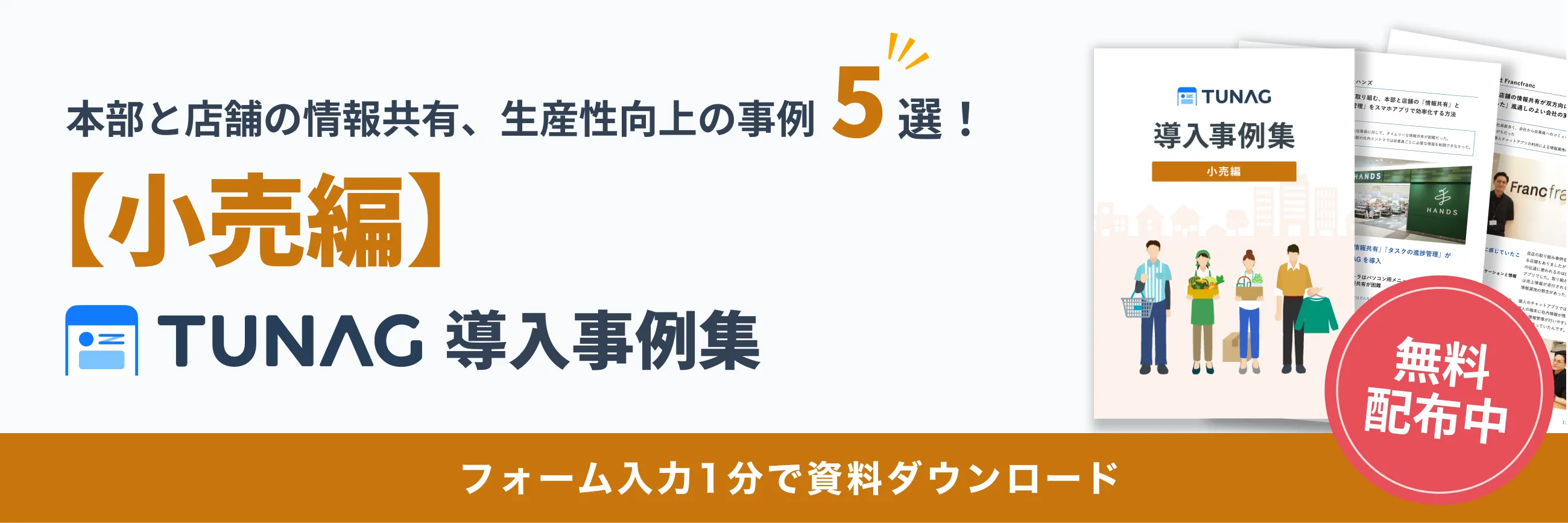 TUNAGを導入した小売業界のお客様の事例集を大公開! 導入以前に抱えていた組織課題や、TUNAGの活用方法、活用語の変化や効果をインタビューしています。是非ご覧ください。