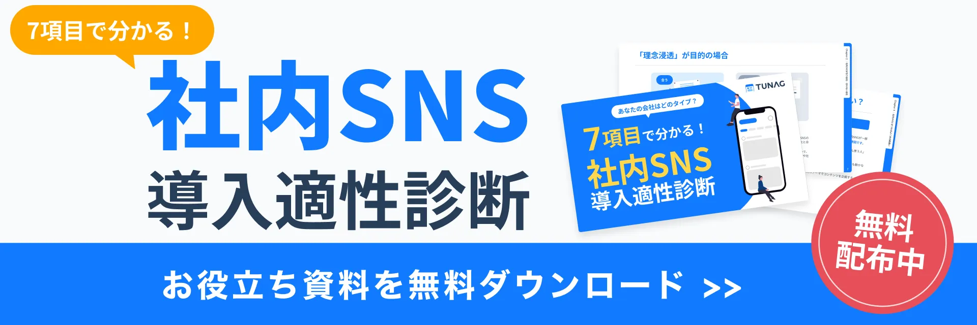 たった7項目で、社内SNSが自社に合うか合わないか診断できる資料です。失敗パターンや成功ポイントも解説。ぜひダウンロードしてセルフチェックにご活用ください。