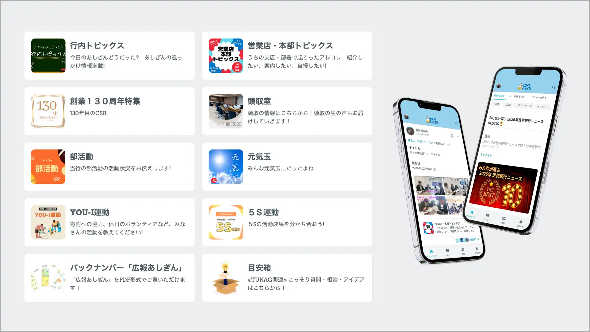 足利銀行、行内コミュニケーションのインフラとして「TUNAG」を導入〜 『情報のサイロ化』を防ぎ、現場の情報を全行で共有。足利銀行が創業130周年を機に選んだ「スマホで浸透する組織改革」〜